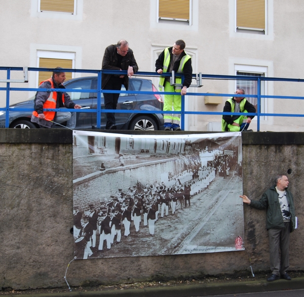Ne soyez pas surpris si vous passez grand’rue à hauteur de la " lanne " de voir des Florangeois d’un autre temps défiler en procession. Il s’agit de la reproduction en 2 mètres par 3 d’une carte postale ancienne, que Florange Patrimoine et Culture vous invite à découvrir. Installée par les services techniques de la ville, c’est la première à être mise en place. Une trentaine d’autres vont suivre à partir de la mi-mai pour constituer une exposition en plein air dans différents secteurs de la cité. L’idée étant de placé la photo à l’endroit où elle a été prise il y a 100 ans. Cette opération est réalisée dans le cadre de la célébration du bicentenaire du rattachement d’Ebange à Florange, signé par l’empereur Napoléon, dans la ville de Vilnius, lors de la campagne de Russie en 1812.
