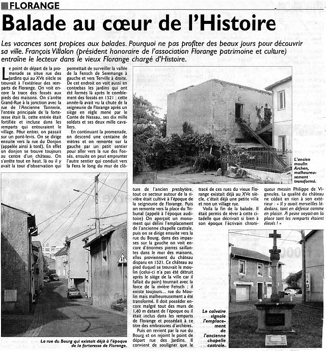 | Du nouveau à Florange Patrimoine et Culture | RL du 16 août 2008 | |