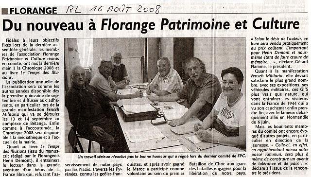 | Florange patrimoine et culture compte 287 membres | RL du 21 mai 2008 | |