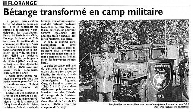| Bétange transformé en camp militaire | RL du 8 septembre 2008 | |