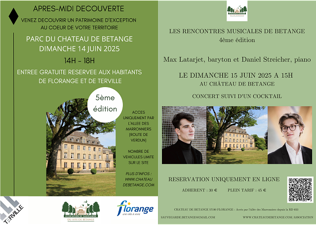 Les Rencontres Musicales de Bétange accueillent cette année Max Latarjet, baryton et Daniel Streicher, piano dans le cadre idyllique du Grand Salon du château de Bétange.