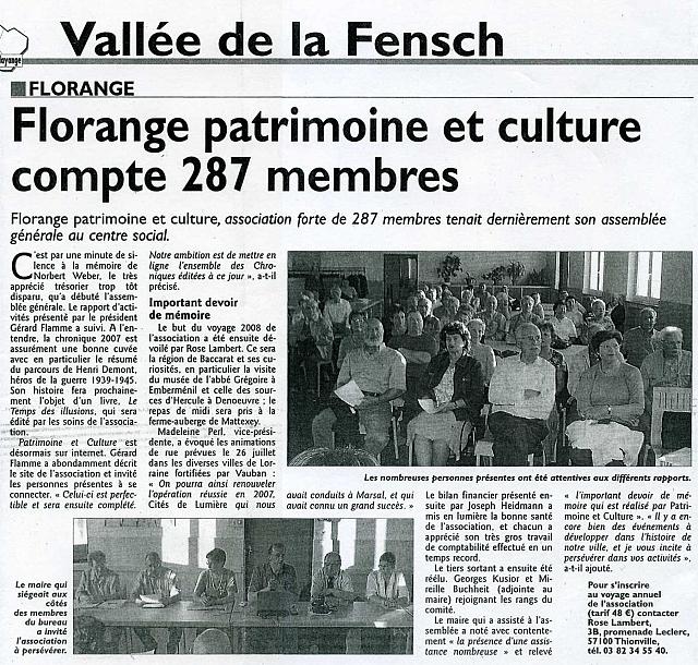 3.A - Jean-Marc PATHIAUX est excusé. Michel CROUE le remplace et porte à connaissance le contenu de la Chronique 2008.